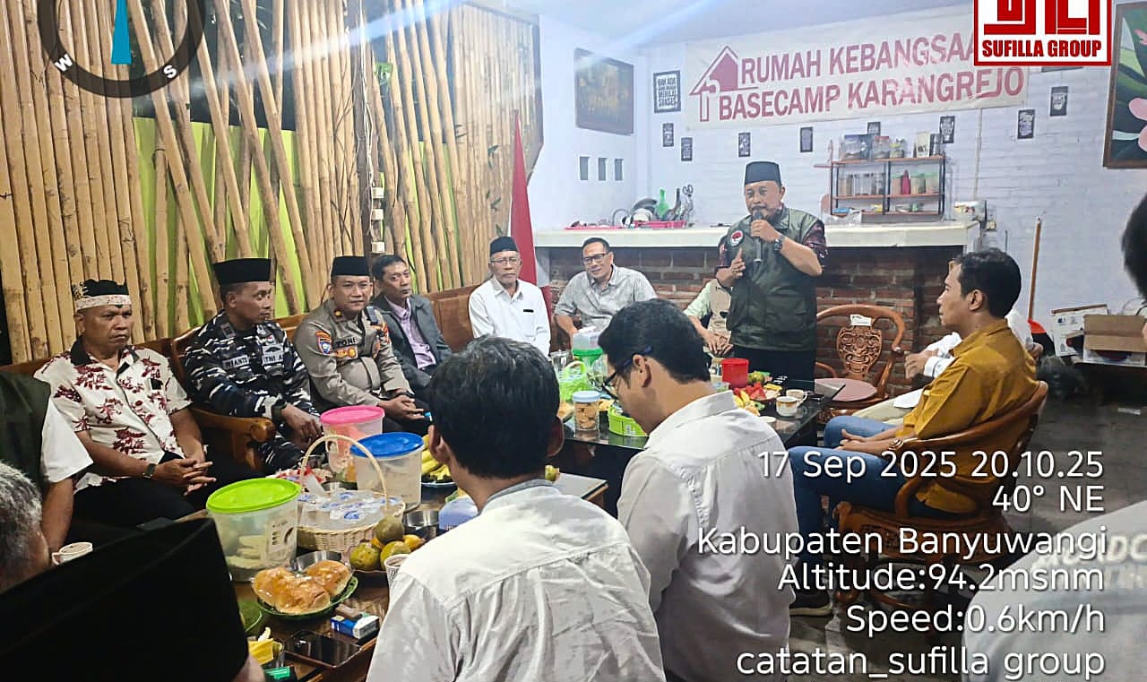 BANYUWANGI – indonetizen.id | Semangat memperingati Maulid Nabi Muhammad SAW 1447 H/2025 M, Rumah Kebangsaan Basecamp Karangrejo (RKBK) Banyuwangi menggelar Diskusi Publik bertema “Merajut Wawasan Kebangsaan dan Harmoni Lintas Agama: Menjaga Kondusivitas Banyuwangi di Momentum Maulid Nabi”, Rabu malam (17/9/2025).