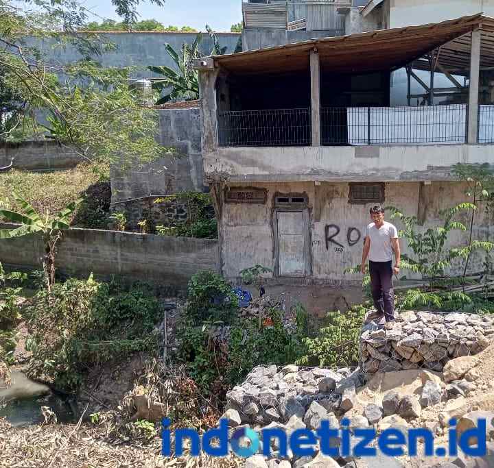 sungai wilayah Kelurahan Mojopanggung, Kecamatan Giri, Banyuwangi, Yang mengatakan proyek tersebut menyerobot lahan milik Anang (55) warga Bonyolangu.