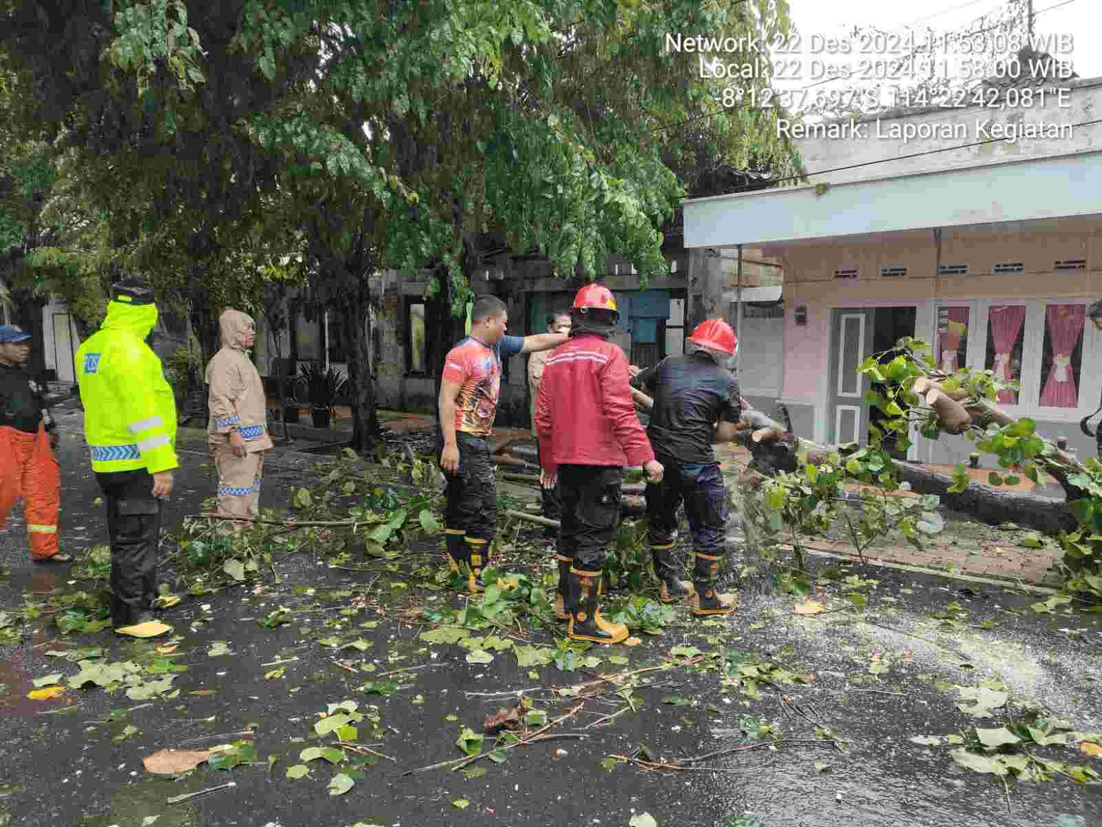 Banyuwangi – indonetizen.id | Hujan deras disertai angin kencang menyebabkan pohon tumbang yang menutup jalan terjadi diberbagai wilayah Banyuwangi , Minggu (22/12/2024).