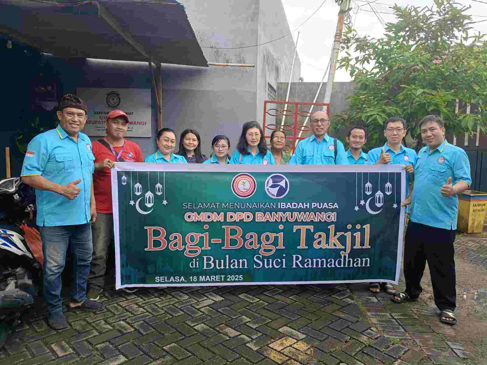 Ketua GMDM Banyuwangi, Risky Halim, bersama Sekretaris Herman Sjahthi dan Bendahara Edy Susanto, mengerahkan para anggotanya untuk membagikan takjil kepada umat Muslim yang masih dalam perjalanan menuju rumah atau bagi musafir yang melintas.