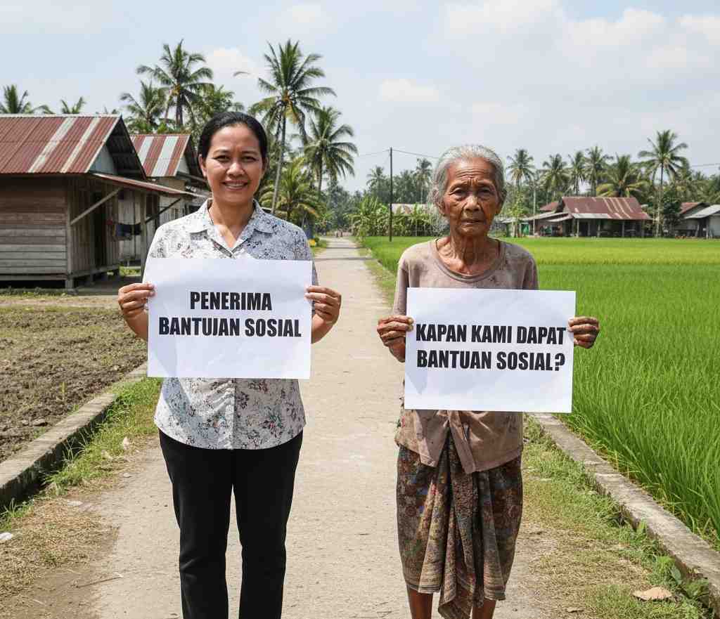 Saya teringat obrolan dengan seorang tetangga, seorang janda tua yang sudah lama sakit-sakitan. Ia pernah berkata dengan getir, “Bang, kok saya gak pernah dapat bantuan, padahal tetangga sebelah yang rumahnya lantai keramik malah terima terus.” Kalimat itu membekas. Bansos yang seharusnya jadi penopang, kadang justru terasa seperti undian nasib. Ada yang layak tapi tak terdata, ada yang mapan malah rutin menerima.