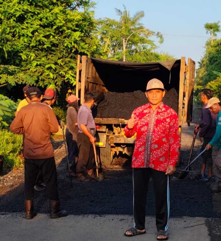 Banyuwangi – indonetizen.id | Melihat adanya jalan yang butuh perbaikan diwilayahnya, Hari Liswanto, kepala desa Sambirejo kecamatan Bangorejo kabupaten Banyuwangi, Jawa Timur ambil langkah cepat.