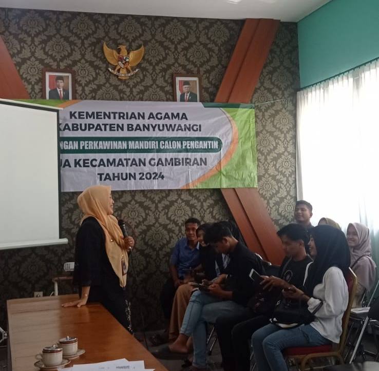 Banyuwangi – indonetizen.id | Kantor Urusan Agama Kec.Gambiran melaksanakan kegiatan BINWIN ,Rabu (17/7/2024) Di ikuti oleh 8 pasangan catin. Hadir dalam Binwin sebagai narasumber Dr. Tiniwati selaku Kepala UPTD Puskesmas Desa jajag yang menyampaikan tema tentang Kesehatan Reproduksi dan pencegahan stunting, Bagaimana kesiapan para calon mempelai wanita yang juga akan menjadi para calon ibu,pentingnya menjaga kesehatan menjaga mental dan harus tau bagaimana menyiapkan diri pada proses kehamilan sampai pada melahirkan.