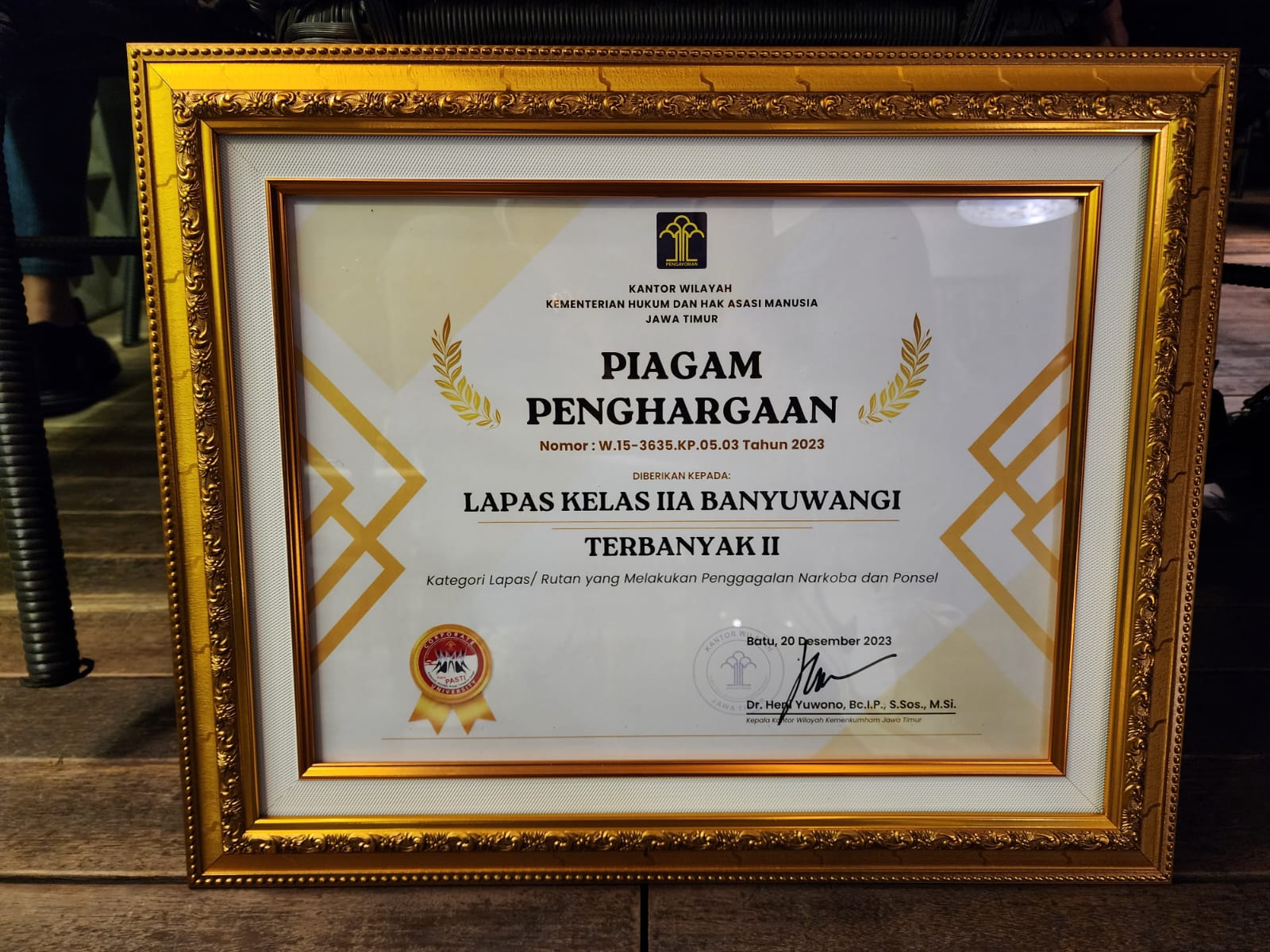 Lapas Banyuwangi Terima Dua Penghargaan dari Kanwil Kemenkumham Jatim, Salah Satunya Terkait Penggagalan Narkoba