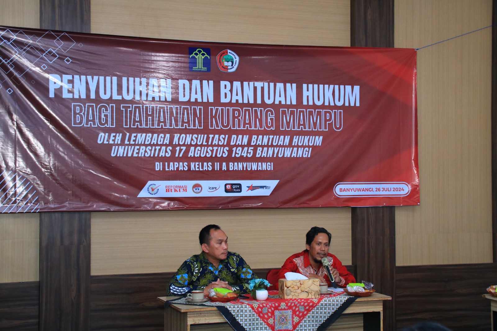 Sebagai wujud transparansi dan pemenuhan hak bagi tahanan tersebut, Lapas Banyuwangi menjalin kolaborasi dengan Lembaga Konsultasi dan Bantuan Hukum Universitas 17 Agustus 1945 Banyuwangi untuk memberikan penyuluhan sekaligus bantuan hukum, Jum’at (26/7/2024).