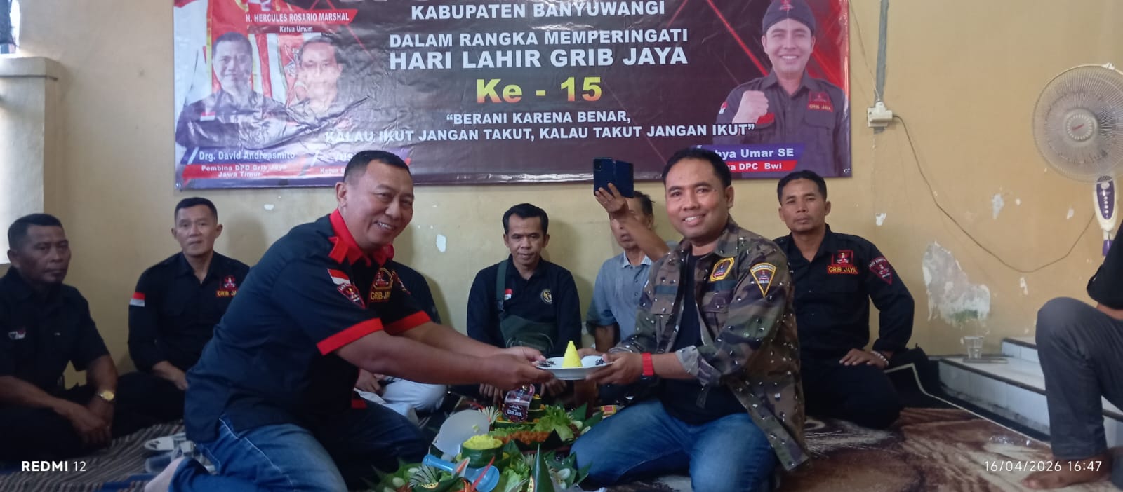 Banyuwangi, indonetizen.id | Dewan Pimpinan Cabang (DPC) GRIB JAYA Kabupaten Banyuwangi menggelar tasyakuran dalam rangka memperingati Hari Lahir (Harlah) GRIB JAYA ke-15. Kegiatan yang berlangsung khidmat dan penuh kebersamaan tersebut dilaksanakan di Markas Komando (Mako) DPC GRIB JAYA Banyuwangi, Kamis (16/04/2026).