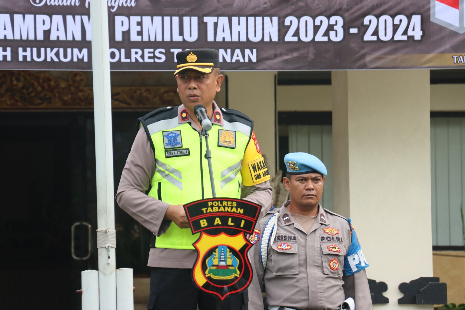 Wakapolres Tabanan Pimpin Apel Gelar Pasukan persiapan Operasi Mantap Brata Agung 2023-2024 Tahapan Kampanye
