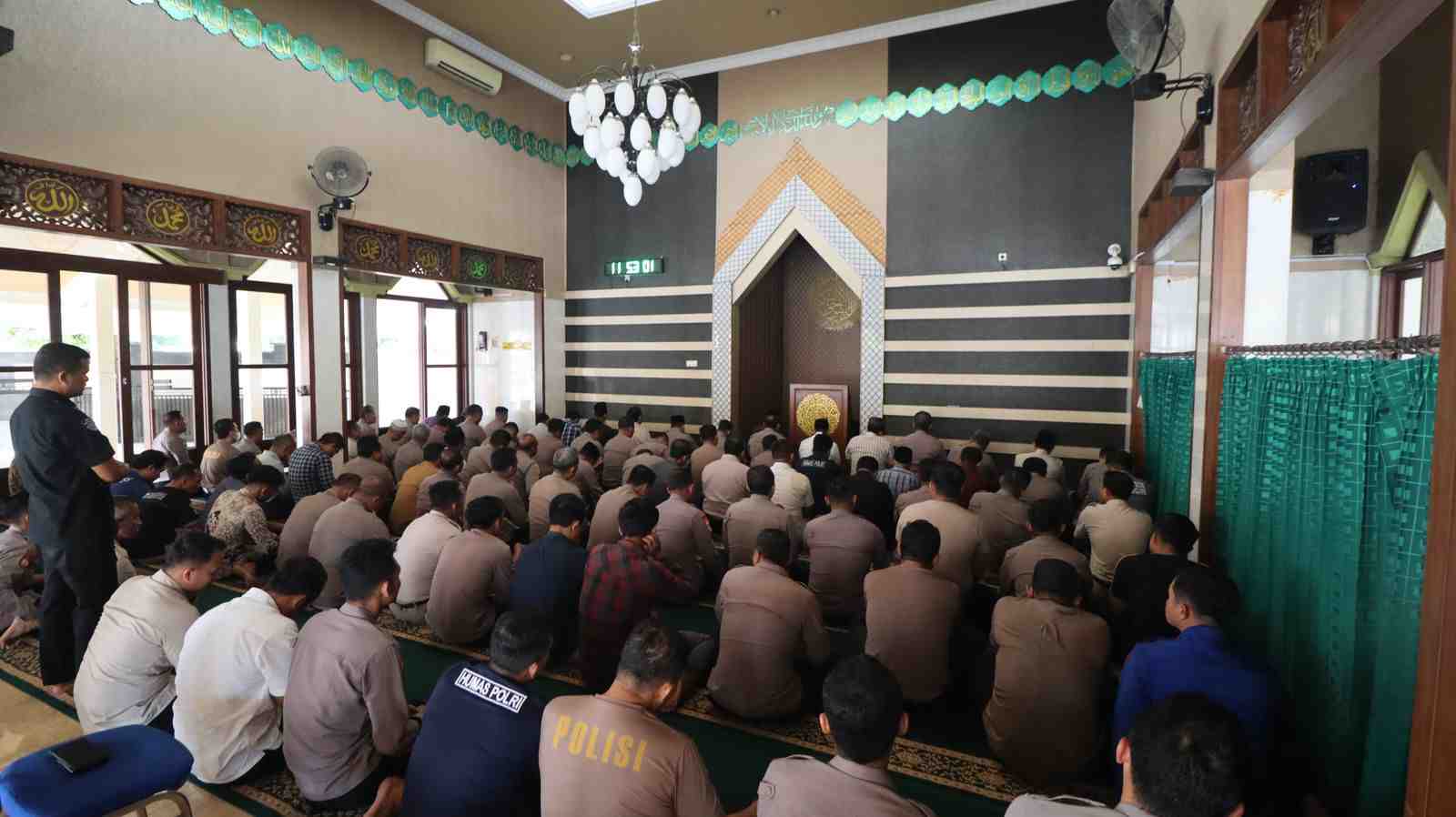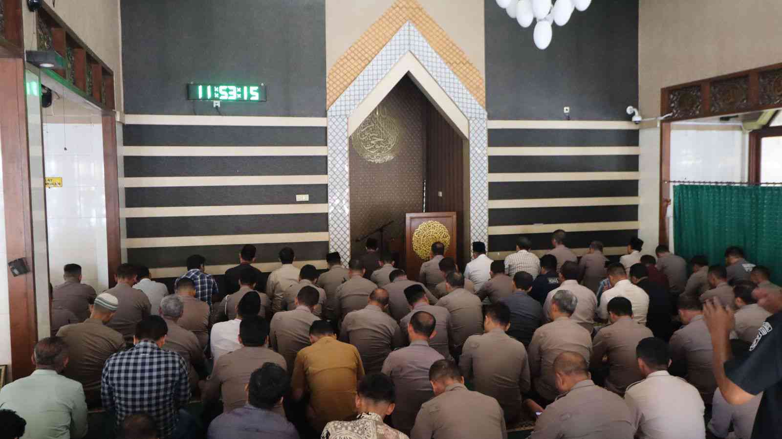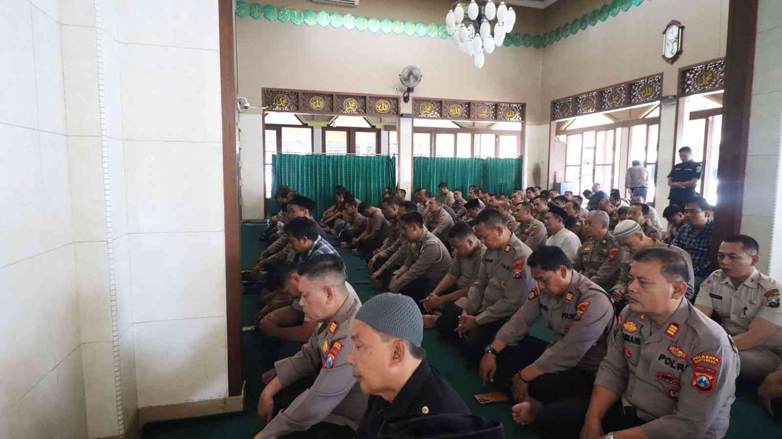 Sholat gaib dilaksanakan di Masjid Rhoudlotul Jannah, Polresta Banyuwangi, seusai shalat dzuhur,pada Selasa (18/3/2025).